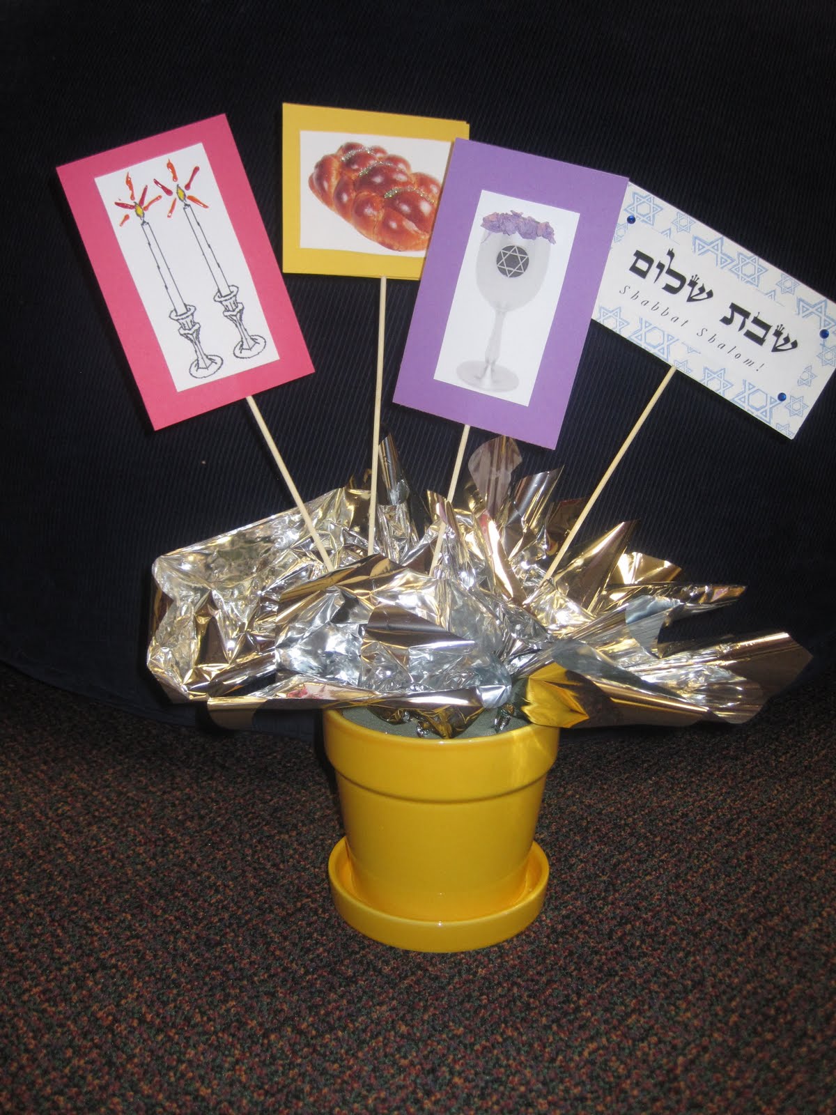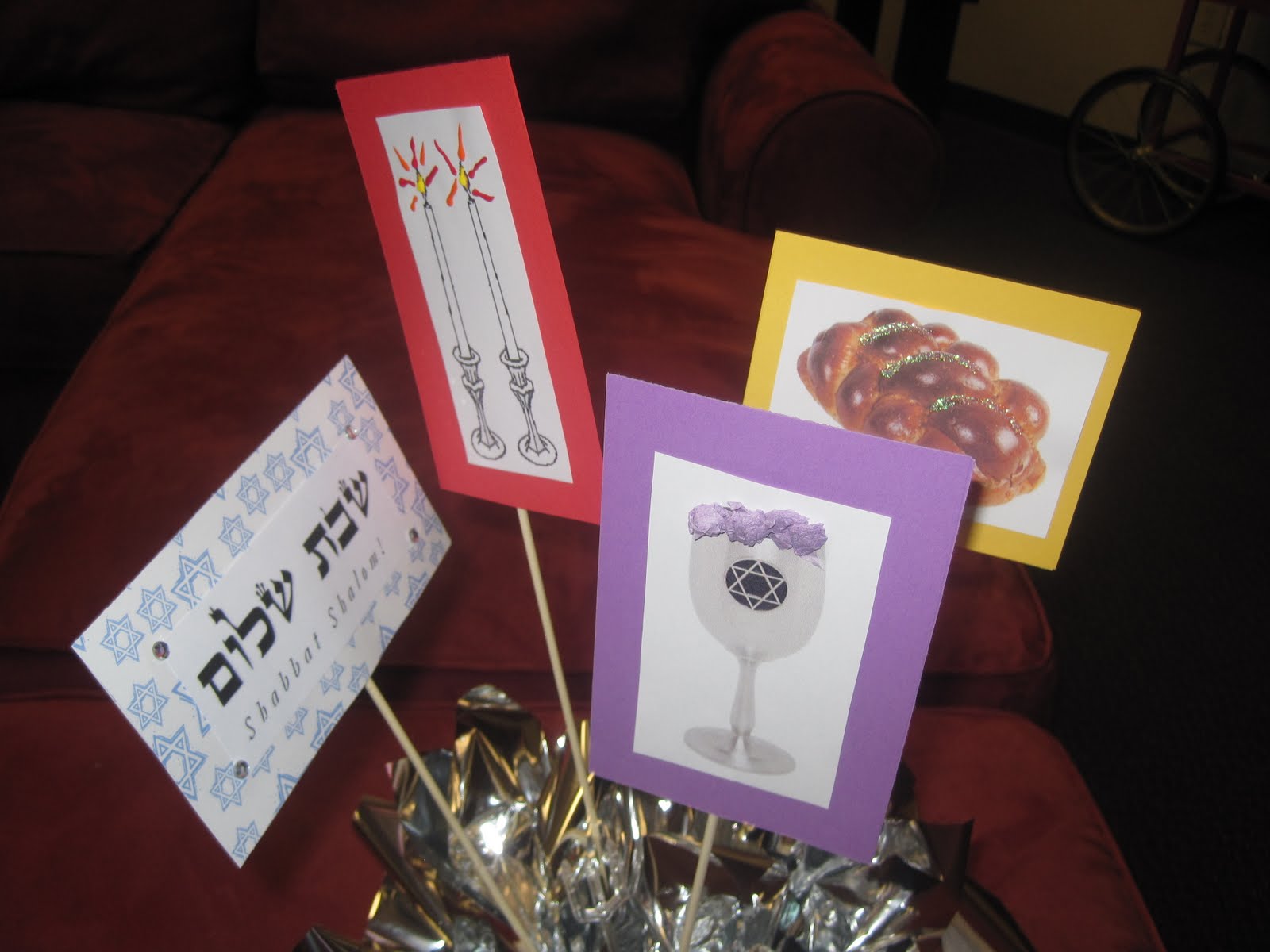Shabbat Centerpieces with all the important items that make Shabbat special…