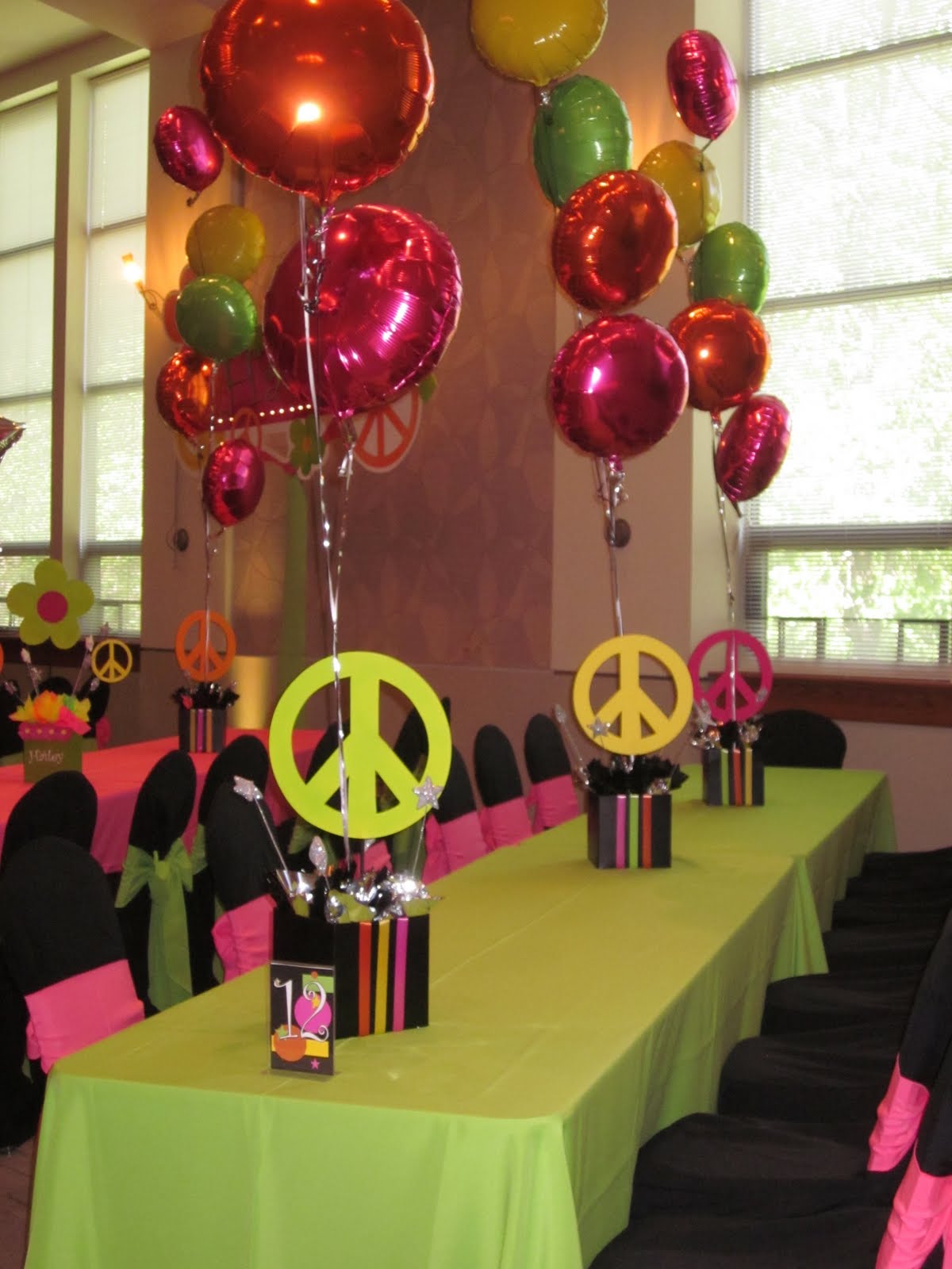 Neon pink, green, yellow and orange! What is a girl to do – her name in lights was a hit. Rounds for the adults and long tables for all of the kids with slightly different decor. Bright, fun, colorful, and exciting done by Let’s Celebrate.