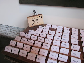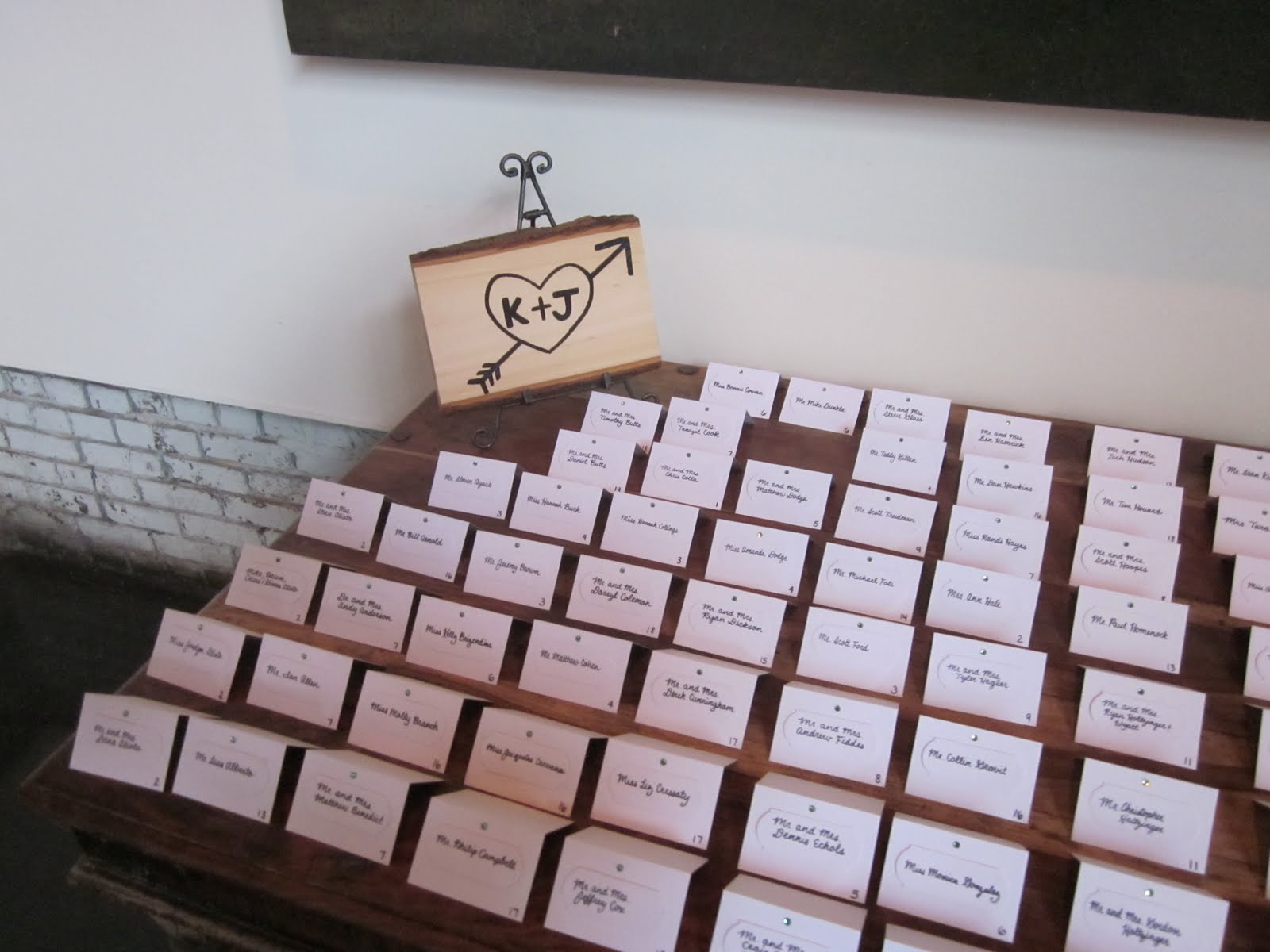 The place card table had florals hanging from the ceiling on top of it – it was a great touch and of course in Katie’s colors…