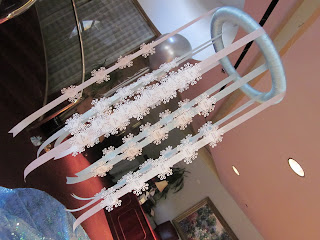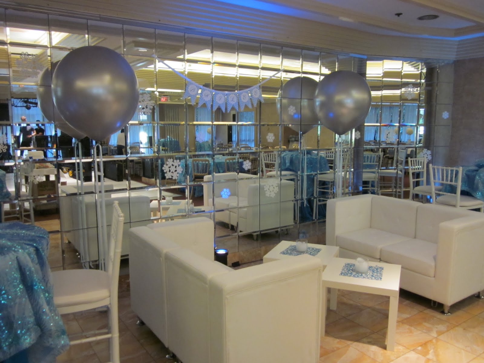 Place cards shaped like snowflakes and hung as if snow were falling greeted the family and guests of this Bat Mitzvah girl who loves winter!