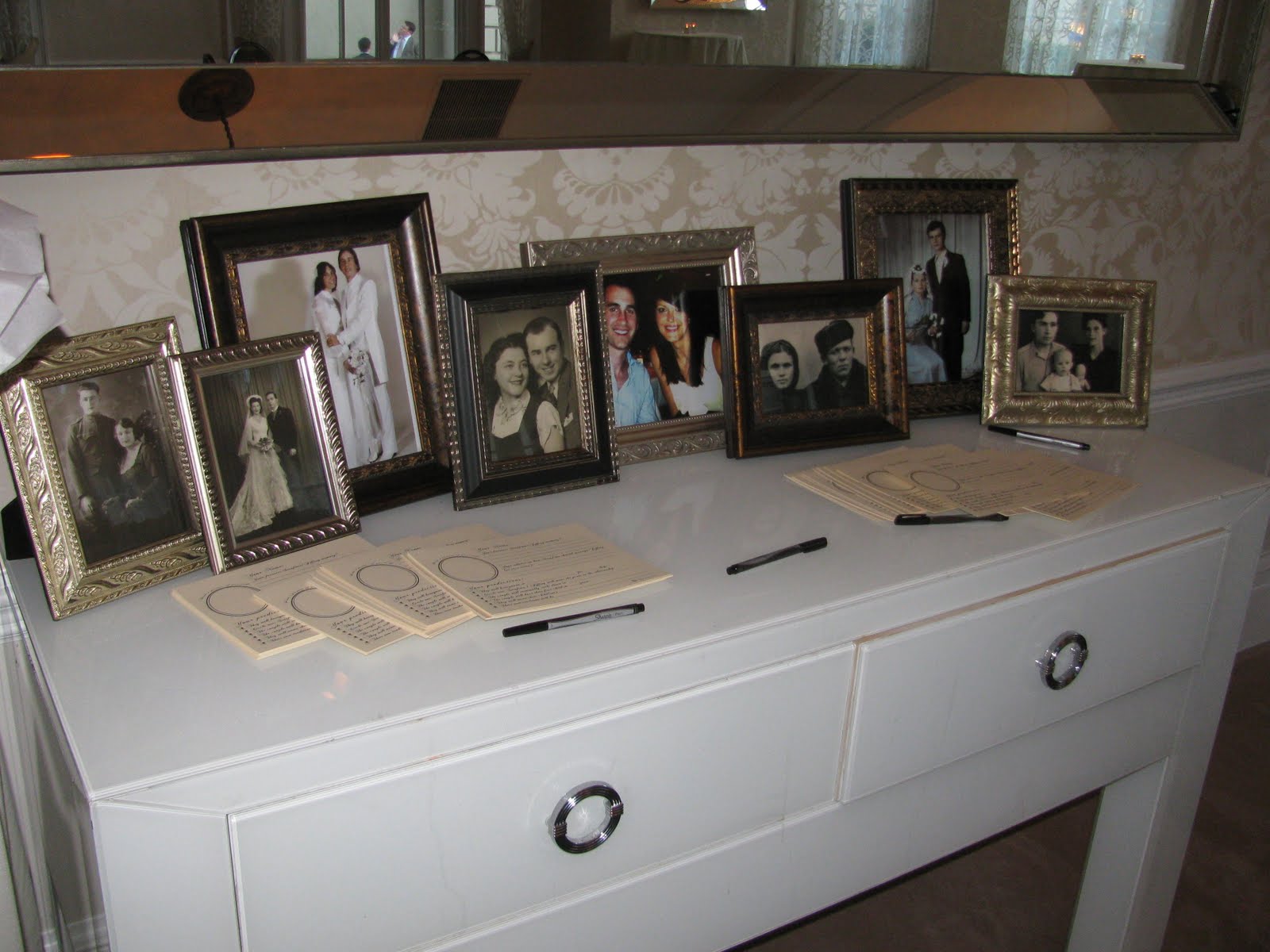 With emphasis on the tradition of generations celebrating and participating in a life event, a table in the cocktail area was garnished with family photos of four generations. Guests were asked to leave words of wisdom for the bride and groom.