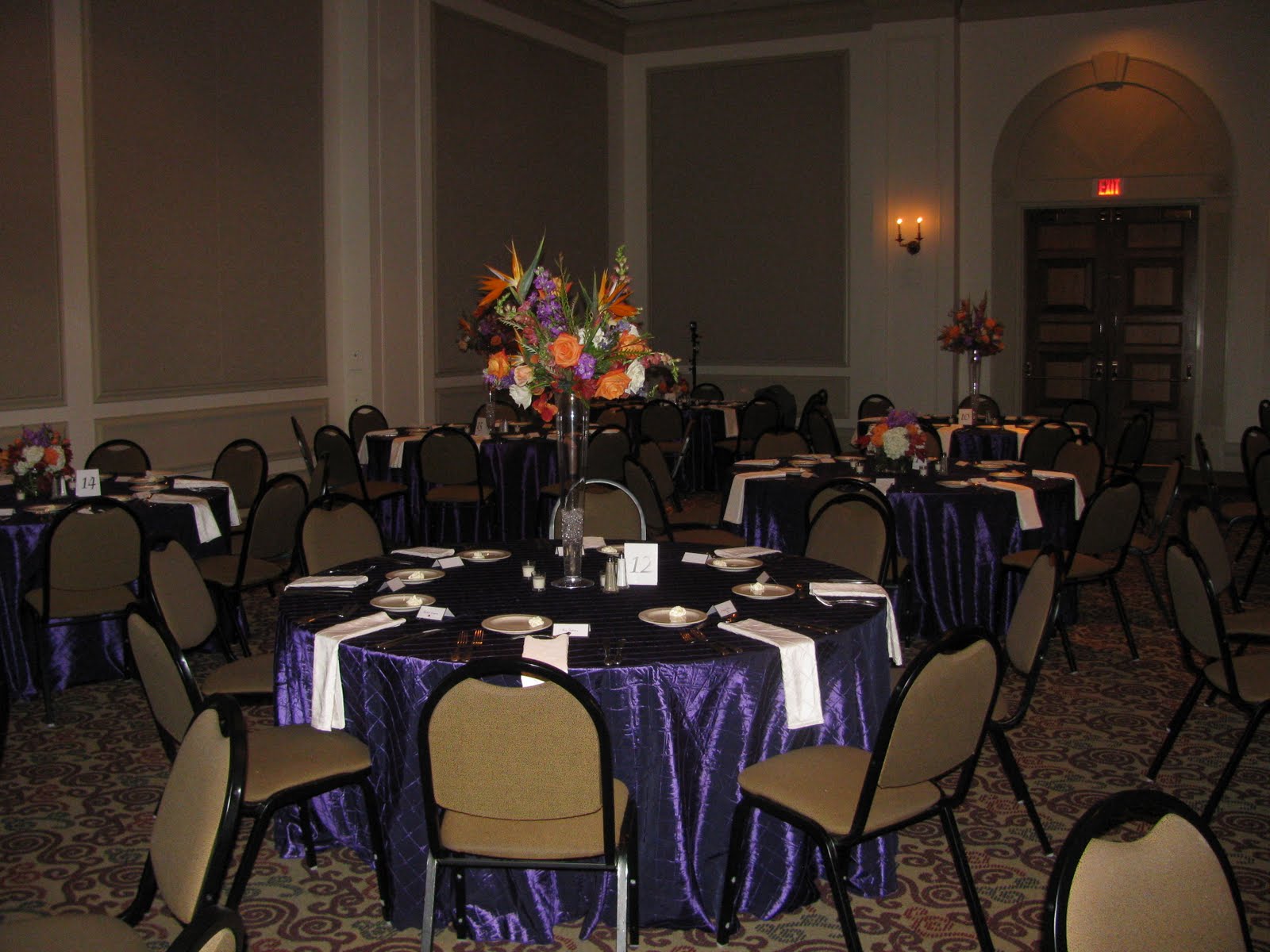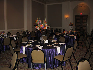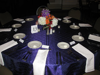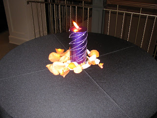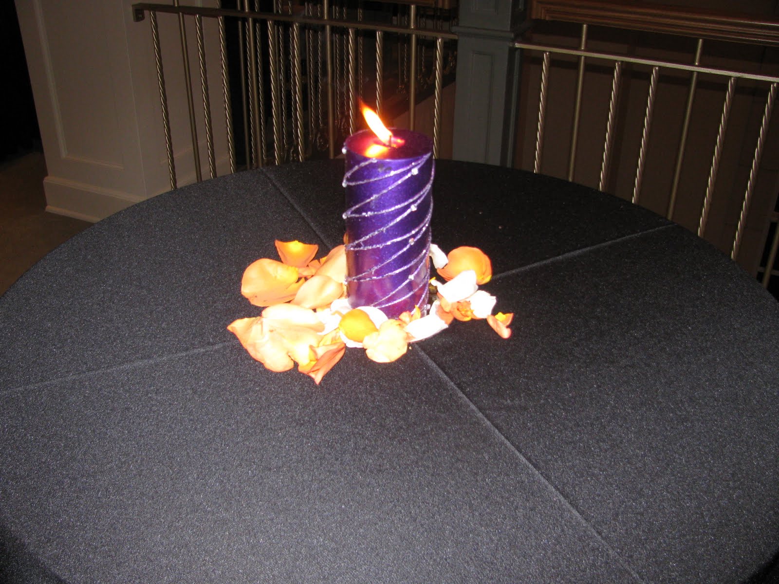 During cocktail hour, numerous high tables with purple candles and rose petals on them offered the guests a place to enjoy!