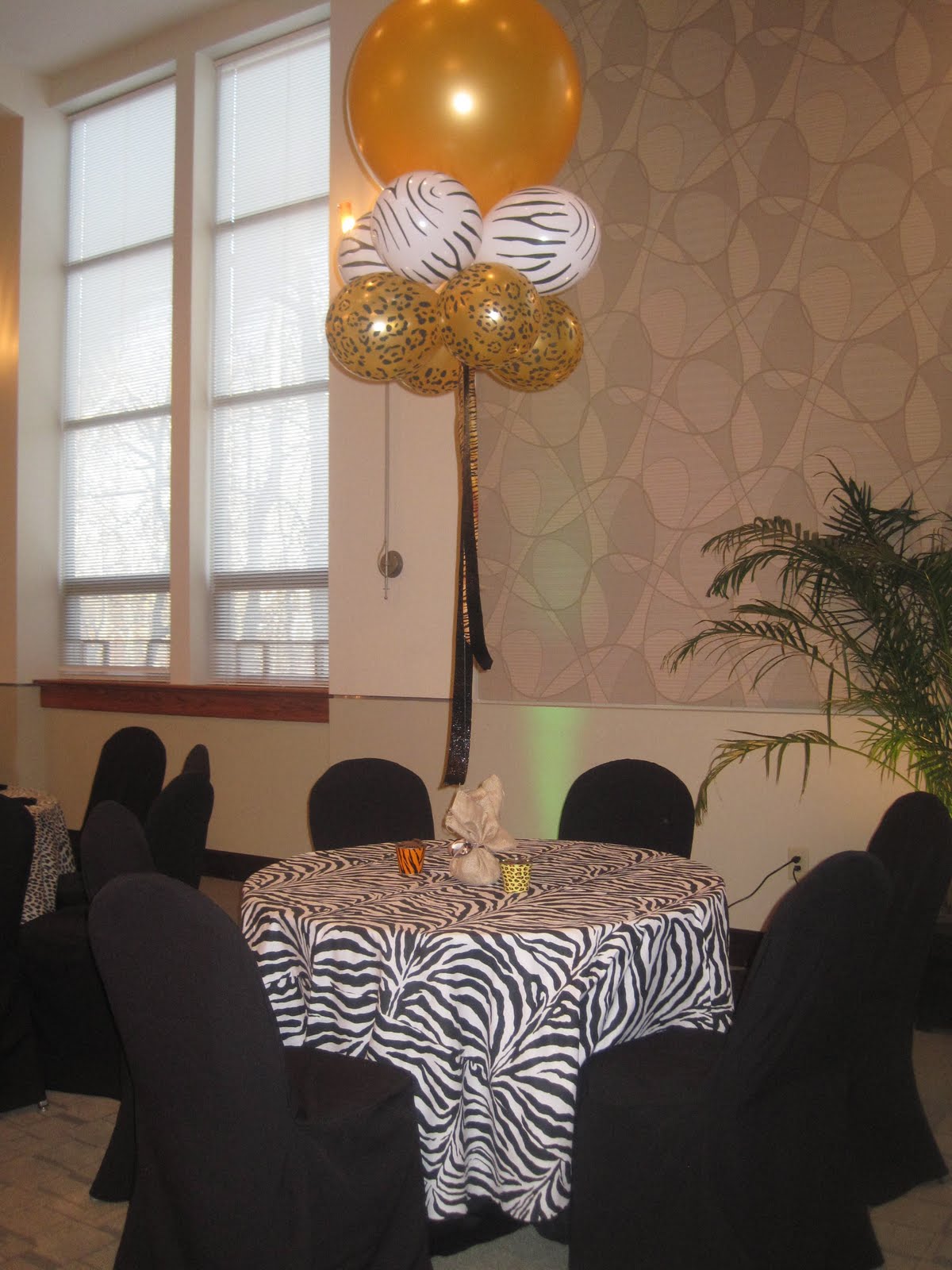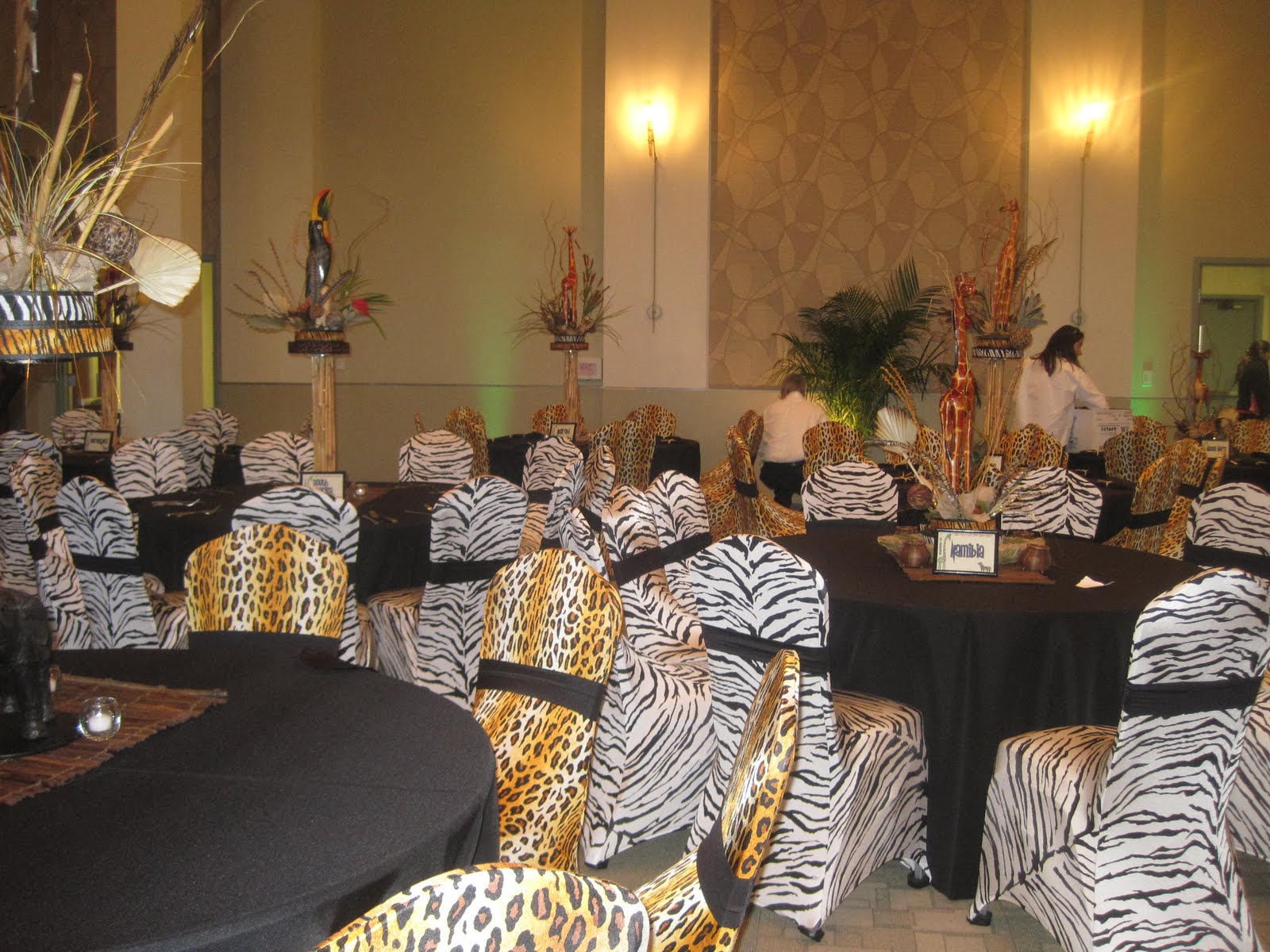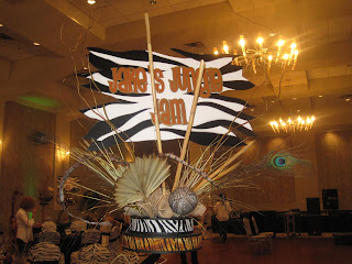 The jungle-themed centerpieces for the adult tables lured guests to a “wild” celebration!
