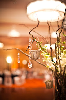 These vases held the bridesmaid bouquets adding to the elements making up the centerpieces!