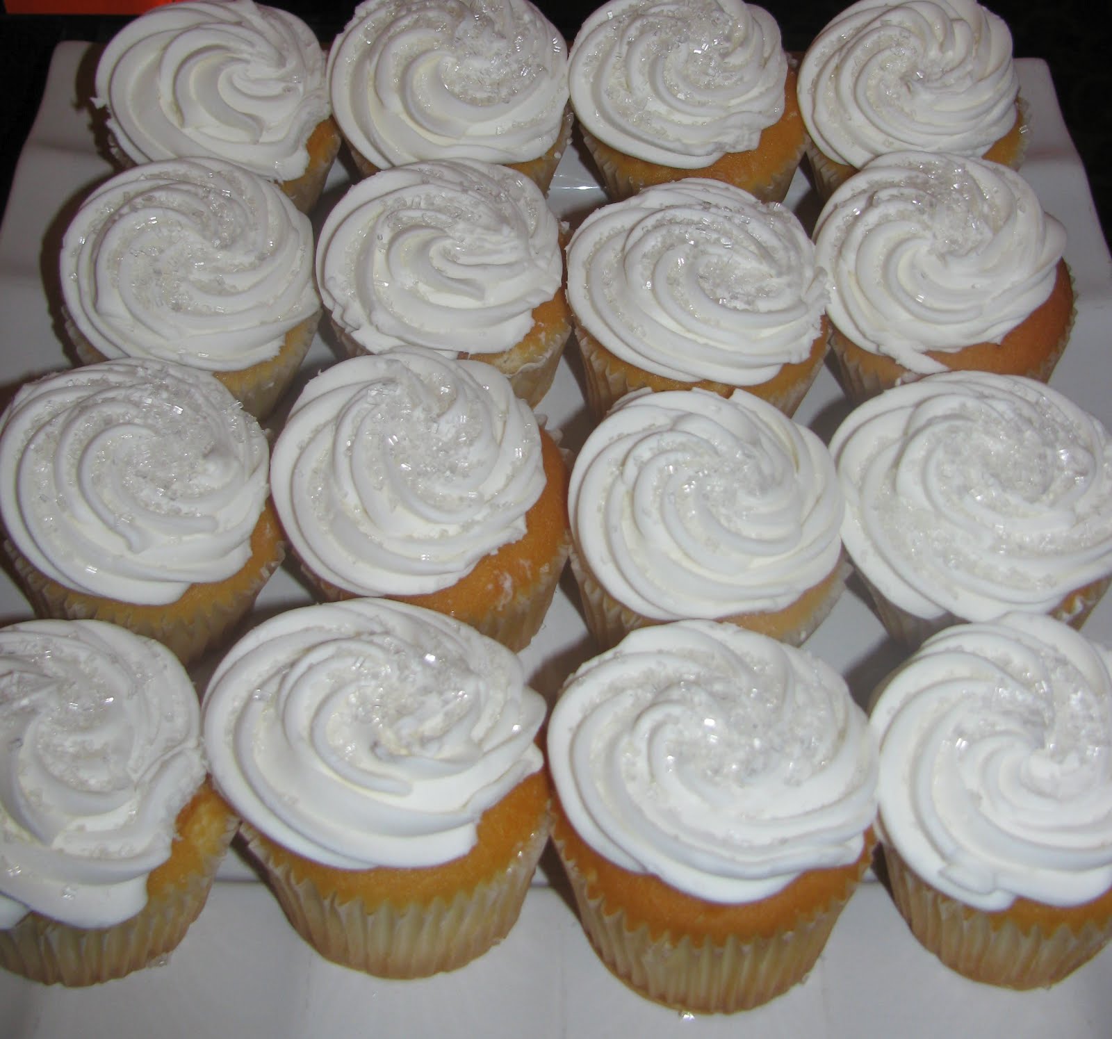 White, sparkling, vanilla cupcakes were exactly what the bride wanted. They were delicious!