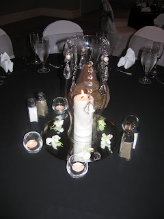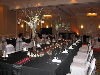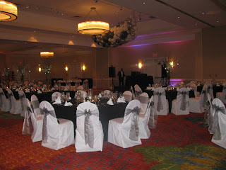 The ballroom was decorated for the festivities with a black, silver and white color scheme.
