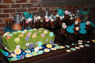 The kids’ dessert included the cutest flower cookies displayed on sticks in a garden,